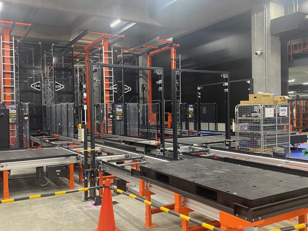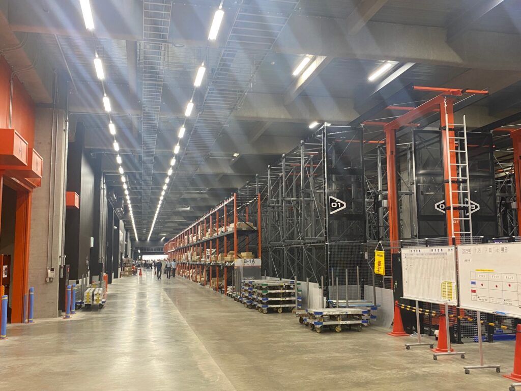 商品は1階東端より入荷。商品の形状・特徴ごとに各フロアで格納され、注文が入ると